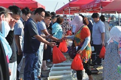 摊位前,市民前来“抢鲜”。