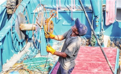 出海前,调整缆绳、检查设备,做足准备。