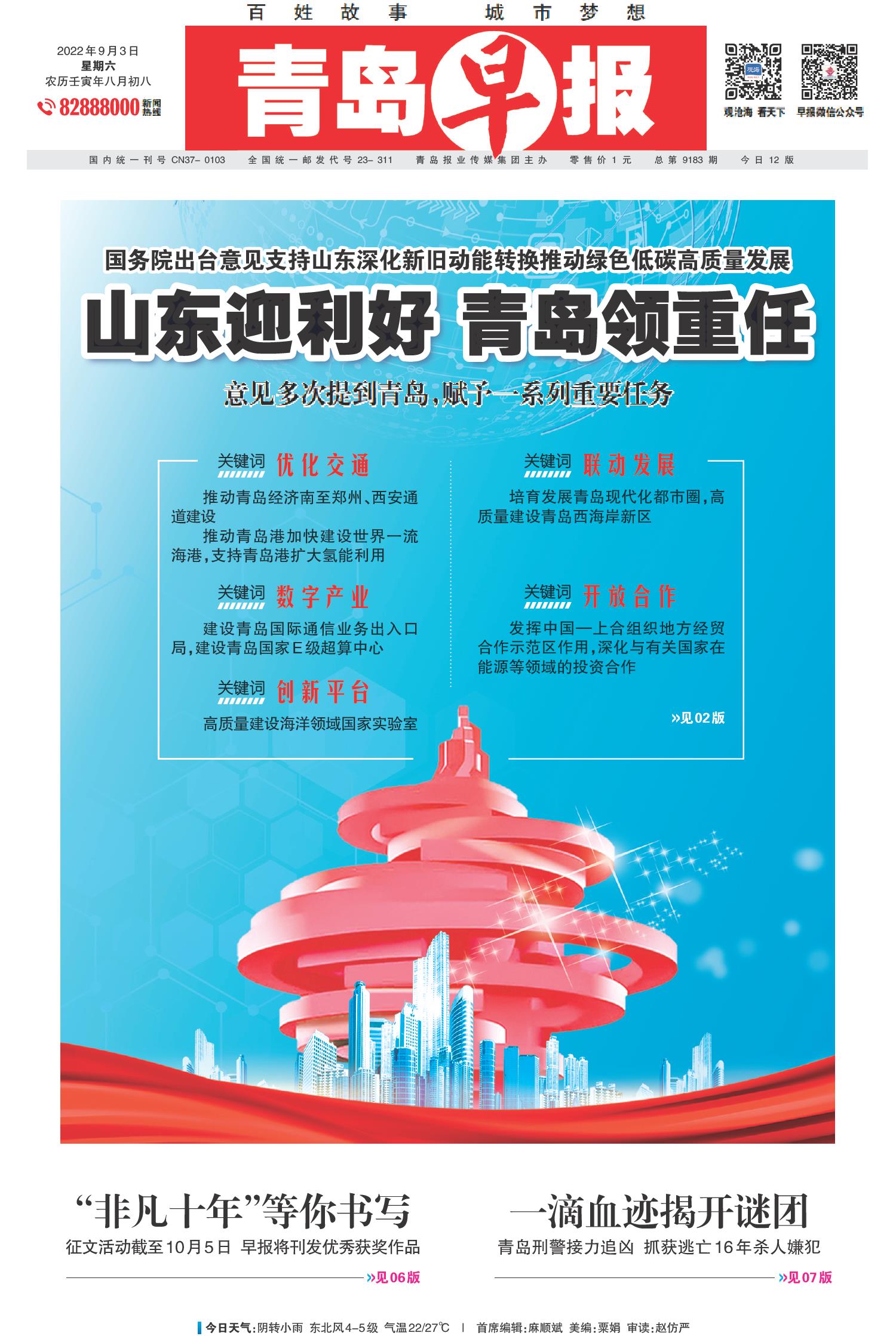 A01 头版 A02 奋进新征程 建功新时代 A03 争创全国文明典范城市 A04 身边事 A05 青岛面孔 A06 都市圈 A07 警戒线 A08 周末嗨钓 A09 汽车 A10 人文青岛 A12 视角