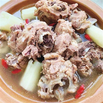 平日里,家住杭州路的市民小毛光顾最多的还是公司食堂和线上外卖APP,因为平时一个人住,总是没有下厨开火的兴趣。偶尔加班,大多是望着冷锅冷灶点外卖。出来改善一下伙食,精美的西餐、日料、韩餐穿肠过,只有周末回父母家安抚胃口。“小时候因为运动扭伤了膝盖,每到阴雨天都会隐隐作痛,我妈奉着‘吃啥补啥’的原则让我啃了不少猪骨。”临近中秋,妈妈已经提前几天到早市上预订了最新鲜的大骨头,只等着小毛回家后,便可以洗净、焯水,切上几段青葱、几块姜片,一个料包,统统放进沸水里滚。半个小时,肉香就会源源不断从锅盖缝隙蹿出来。