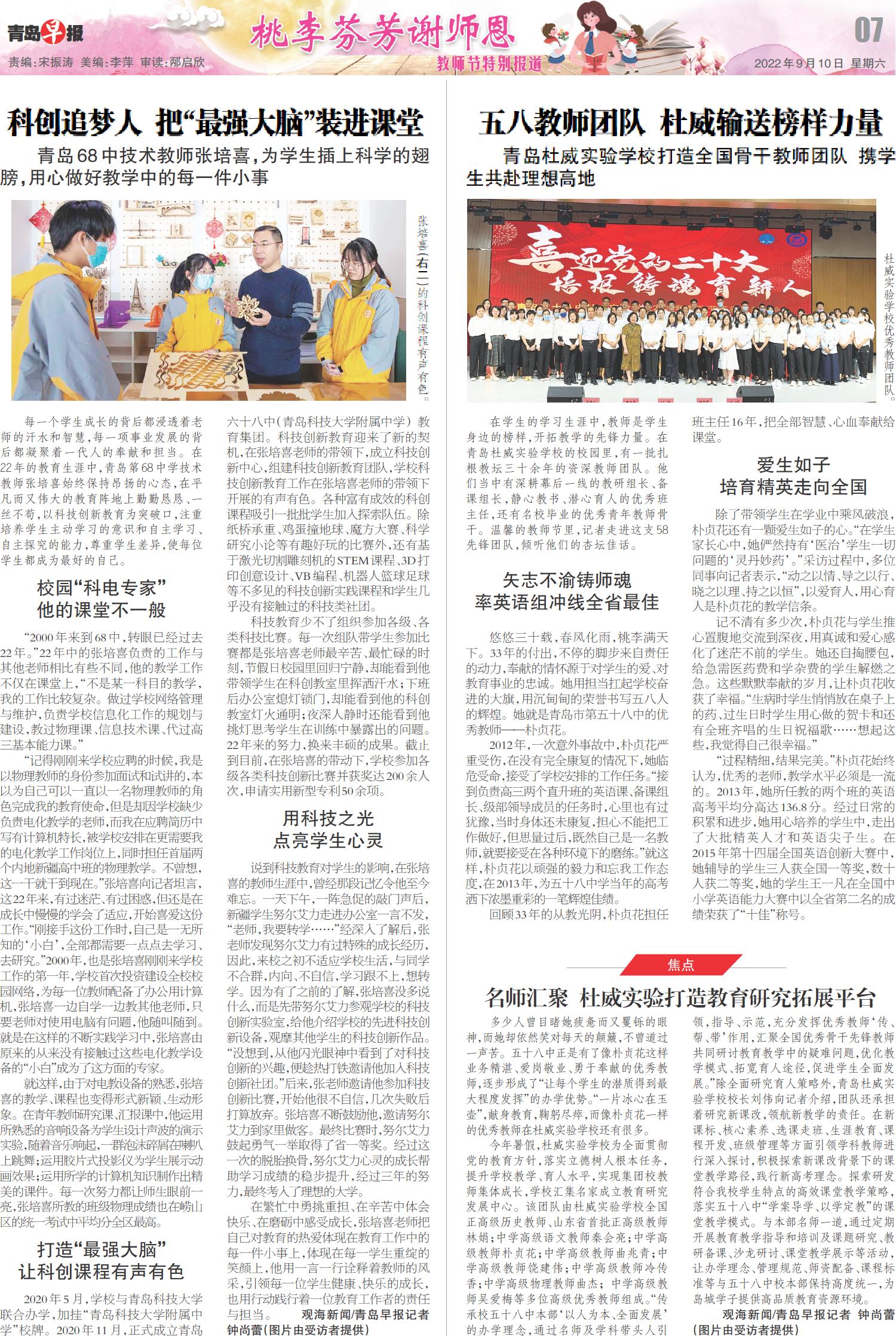 五八教师团队 杜威输送榜样力量
