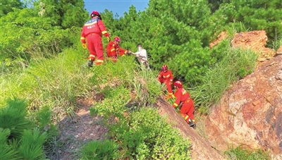 消防救援人员将游客救援至安全地带。崂山消防供图