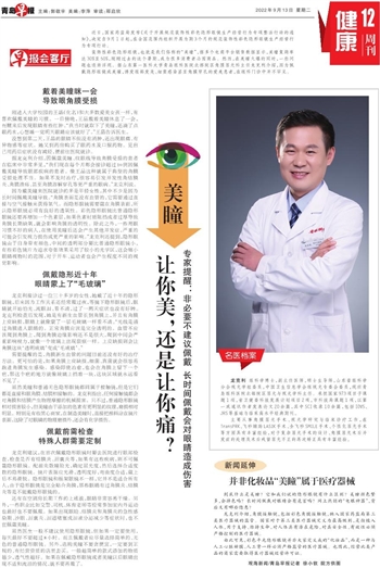 装饰性彩色隐形眼镜,也就是我们俗称的“美瞳”,据多个电商平台销售数据显示,美瞳复购率达30%至50%,刚刚过去的这个暑期,成为很多消费者必囤商品。然而,在美瞳火爆的同时,一些问题也逐渐浮现。据山东第一医科大学青岛眼科医院北部院区角膜屈光科主任龙克利介绍,因为佩戴隐形眼镜或美瞳,诱发眼部发炎、细菌感染甚至角膜穿孔的爱美患者,在眼科门诊中并不罕见。