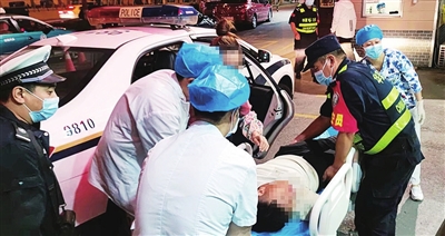 执勤交警将突发疾病男子安全送到医院救治。市北交警供图