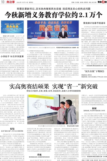 在教育领域,今年秋季新学期,即墨区集中启用了德馨小学和二十八中东校区等13所义务教育学校,新增义务教育学位约2.1万个,并且从全区范围内选优配强领导班子和教师队伍,很多教师都是学科骨干和带头人,极大缓解了城区东西部教育资源不均衡的问题。高中阶段,即墨一中改扩建工程已经建成主体,龙山和龙泉两所新高中也在加紧建设,全部建成后将新增公办高中学位9600个,保障教育资源高位均衡。