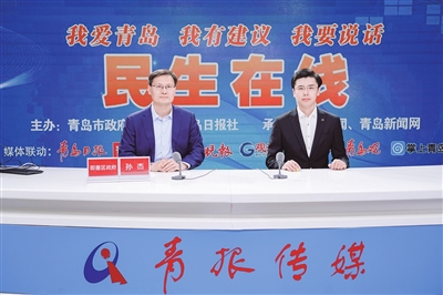 即墨区委副书记、区长孙杰(左)做客民生在线。观海新闻/青报全媒体记者 魏懋轩 摄