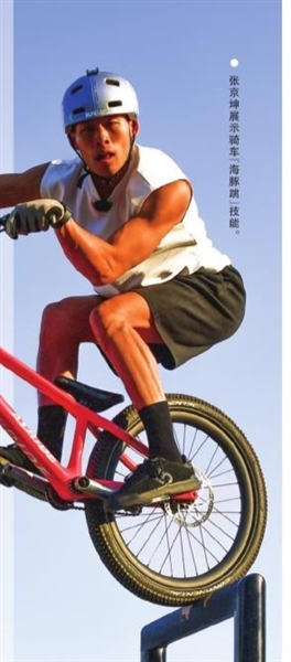 青岛小伙1分钟完成14次自行车后轮定杆“海豚跳”