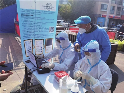 志愿服务队成员在核酸检测工作现场。