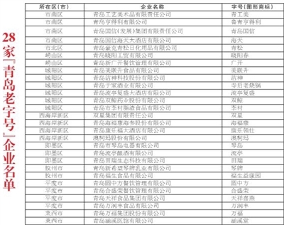 “获得‘青岛老字号’称号的企业要珍惜荣誉,持续传承创新,充分发挥老字号在品牌建设、消费促进、弘扬传统文化等方面的积极作用,更好满足人民群众美好生活需要。”记者从市商务局了解到,本次入选的28家企业中,多数是青岛市民耳熟能详的品牌。青岛国信、海天、晓阳春、洁神、寺后老烧锅、澳柯玛、琴牌、万福等与岛城人民生活密切相关的品牌都在“青岛老字号”之列。