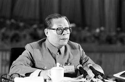 1989年6月23日至24日,中国共产党第十三届中央委员会第四次全体会议在北京召开。这是江泽民同志在会上讲话。 新华社发