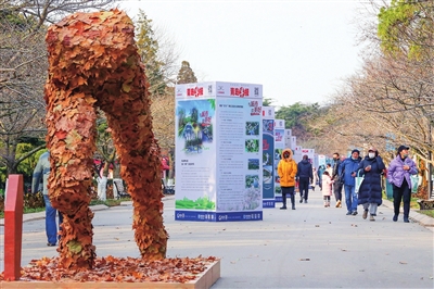 市民们沿着一幅幅巨报仔细参观,还会发现许多“创意”藏在后面:国内首个沉浸式互动型大地艺术节,处处都是拍照打卡的取景地。记者看到,许多落叶、枯枝等自然界废弃物,通过艺术的手段变废为宝,打造出了一个个落叶装置艺术品。此时正值初冬,在樱花大道、太平山公园花溪谷等网红打卡地推出的落叶艺术展,三组落叶艺术装置和一系列“落叶魔法师”作品,让人忍不住按动快门一一拍下来。利用音响装置,推出的“大地之声”沉浸体验环节,能还原山谷、森林、海洋等大自然的情景,让市民如置身大自然中欣赏艺术作品。