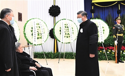 12月5日,江泽民同志的遗体在北京火化。这是习近平向江泽民同志的夫人王冶坪和亲属表示深切慰问。新华社发