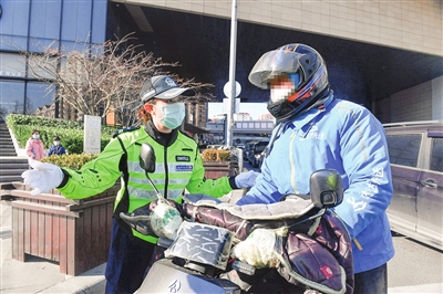 12月5日上午9时30分,记者跟随执勤交警来到山东路闽江路路口设点检查。9时55分,赵某某驾驶外卖电动自行车在路口自西向东行驶时,因路口车辆较多,赵某某为图方便跑到最左侧车道行驶,被执勤民警当场拦下。民警现场对赵某某进行了批评教育,告知其不按车道行驶的危险性,并按照规定予以20元处罚。