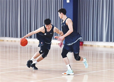 国信男篮队员在训练中。 观海新闻/青报全媒体记者 王雷 摄