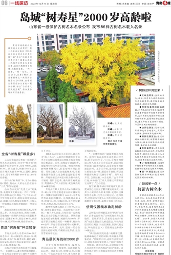 这些古树名木在两处地方比较集中,一处是崂山太清宫和明霞洞景区;一处是西海岸新区宝山镇和大场镇的几个村庄。