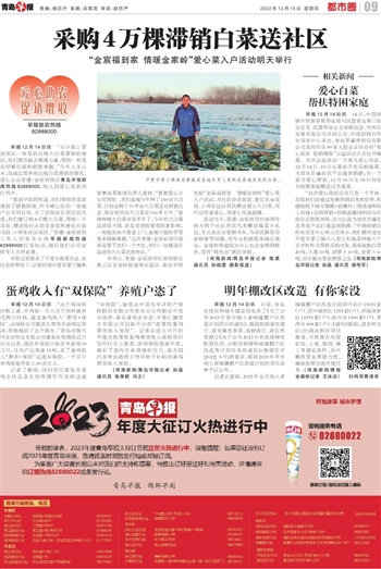早报12月14日讯 “从早报上看到郊区一些菜农出现大白菜滞销的情况,我们想贡献点微薄力量,帮助一些菜农纾解目前的销售难题。”今年入冬以来,岛城近郊多地出现白菜滞销的情况,爱心企业青建·金宸府拨打青岛早报新闻热线82888000,加入到爱心助农的行列中。