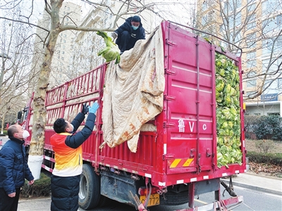 “最近天气特别冷,许多大白菜都冻在了地里,再加上疫情的影响,销售大白菜成了每一个农户的难题,销售的周期越长,受冻的大白菜越多,会对农户造成很大的损失。多亏了青岛早报发起的‘爱心白菜进社区’公益活动,让许多爱心企业看到了农户的难处,并伸出援助之手,为农户解决了很大的难题。青建·金宸府项目部联合崂山区金家岭街道埠东管区、青岛早报发起的‘金宸福到家 情暖金家岭’爱心菜入户活动,一次性采购了4万棵大白菜,帮助好几家农户解决了销售问题,而且最近有好几家爱心企业找到了我们,这让我们看到了希望,真的是太感激你们了,谢谢你们!”平度市蓼兰镇焦家寨蔬菜基地负责人姜林激动地告诉记者,青岛早报发起的“爱心白菜进社区”公益活动可帮了他们大忙啦。
