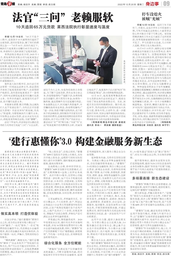 2022年以来,建行创新迭代“建行惠懂你”3.0版本,立足融资、成长和生态“三条主线”,全面构建平台化生态体系,为用户带来更加友好的信贷服务体验,更加便利的专业金融服务,更加全面的生态综合服务体系。目前,青岛地区服务小微企业(含个体工商户,下同)客户已超4万户,累计发放贷款超过400亿元。