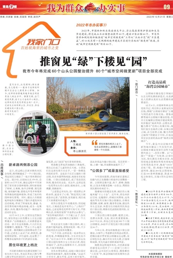 细数身边环境的变化,市民最直接的感受是公园多了——在家门口的口袋公园,让市民们从看得见、摸得着的“小而美”中,体会到城市的发展和生活的幸福。