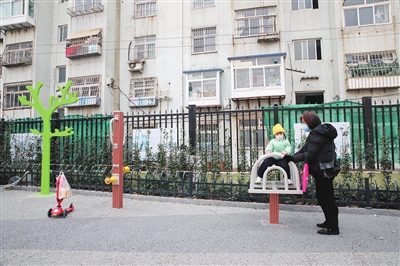 宣化支路口袋公园,左女士和外孙女在公园玩耍。