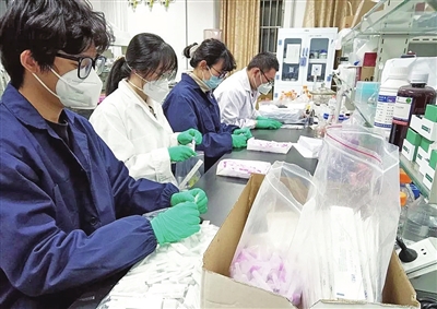 早报12月22日讯 当下,哪里还有渠道可以获得抗原检测盒?最近你是否为这些问题苦恼?没关系,高校科研团队出手了!22日,记者从中国石油大学(华东)化学化工学院了解到,化学化工学院曾景斌教授基于已有研究,带领团队迅速化身“生产小队”,将实验室作为临时“生产点”,用科研设备和材料,手工自制抗原检测试剂盒,并免费向有需求的教职工和留校学生发放。
