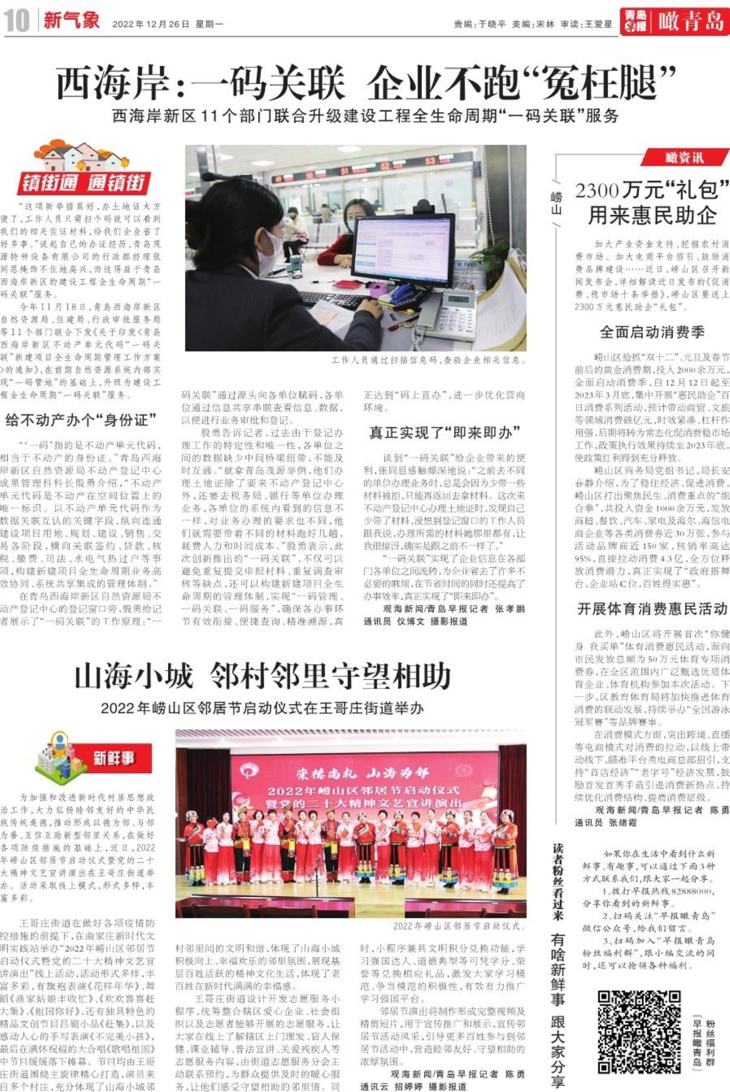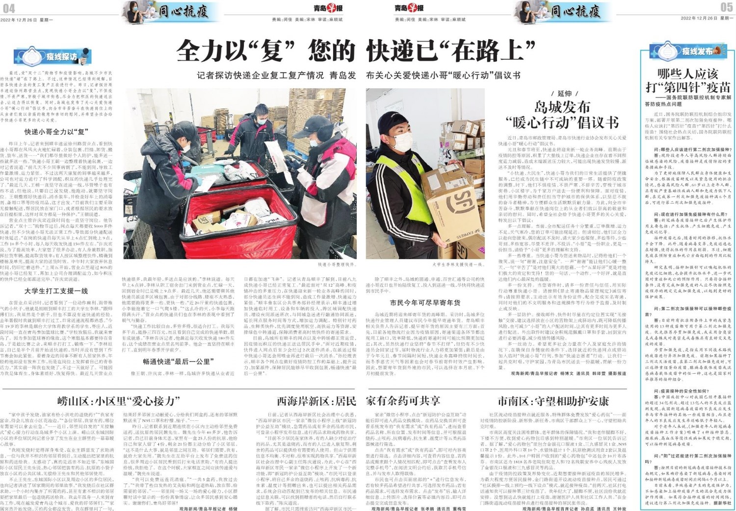A01 头版 A02 划重点 A03 城市更新建设,让生活更美好 A04 同心抗疫 A06 创建全国文明典范城市 A07 城记2022 A08 身边事 A09 瞰青岛 A10 新气象 A11 乐游 A12 观天下
