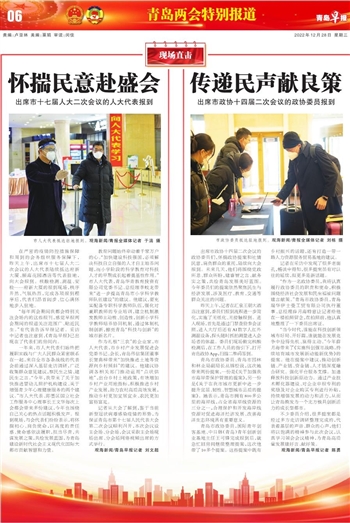 一年来,市人大代表们始终把履职实践与广大人民群众紧密联系在一起,来自全市各条战线的代表会前通过深入基层走访调研,广泛收集群众意见建议,察民生之情、建民生之言。“今年,我带来了关于加快推进婴幼儿照护机构建设、关于增强青少年心理健康服务的两个建议。”市人大代表、即墨区国立社会工作服务中心理事长王文华每次上会都会带来多份建议,今年也围绕自己关心的热点话题积极发声。报到现场,与会代表们纷纷表示,将怀揣初心、肩负使命,以高度的责任感、使命感依法履职,担当尽责,共谋发展之策,共绘发展蓝图,为青岛建设新时代社会主义现代化国际大都市贡献智慧和力量。