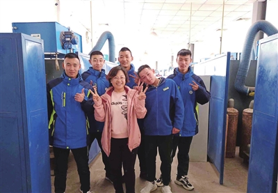 杨菲(左五)和学生们在一起。