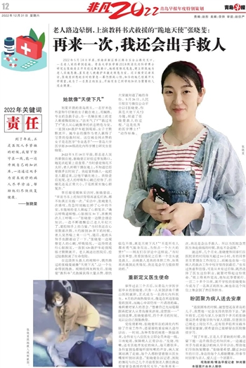 2022年5月18日早晨,西海岸新区香江路与五台山路交叉口,一名老人突然晕倒在地。青岛大学医学部2018级消化内科学博士研究生张晓斐正开车经过事发路口,她感觉情况危急,便立即跪地为老人实施急救,直至老人被救护车救走转危为安。近日接受记者采访,张晓斐回想起当时的紧急一幕仍胆战心惊,如今的她已经离开大学课堂,成为了一名真正的医生,开始用自己所学的知识为需要的人送去健康。