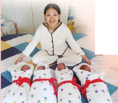 ■四胞胎“擎淇舒婳”出生20多天后全部出院回到妈妈怀抱
