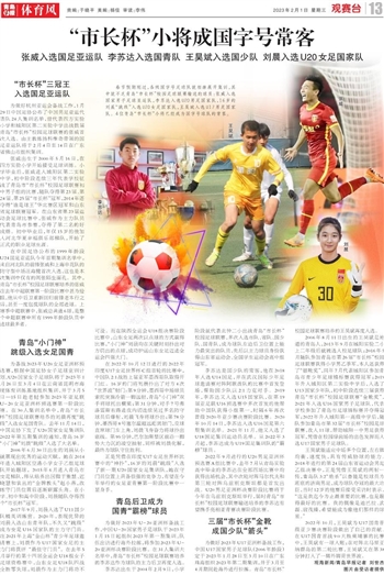 为备战2023年U20女足亚洲杯预选赛,根据中国足协女子足球竞训计划,U20国家女子足球队将于2023年1月26日至3月4日在云南省昆明市海埂体育训练基地组织集训,并于3月5日—15日赴老挝参加2023年亚足联U-20女足亚洲杯预选赛第一阶段比赛。在30人集训名单中,青岛“市长杯”校园足球联赛培养的刘晨再度“跳级”入选女足国青队。去年11月14日,中国足协下发了U20国家女足集训队2022年第五期集训的通知,青岛16岁“小门神”刘晨“跳级”入选了大名单。
