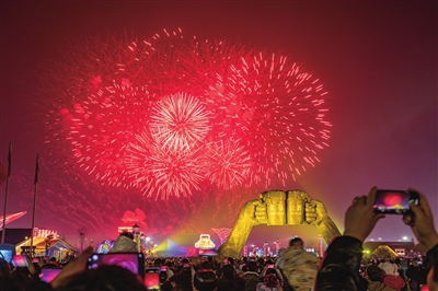 火树银花触目红,揭天鼓吹闹春风。2月5日晚,青岛西海岸新区2023年元宵节大型焰火秀震撼上演,为前来观看的市民游客献上了一场无与伦比的视觉盛宴。漫天礼花璀璨夺目,燃旺新春烟火气,燃起新区精气神。