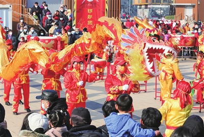 舞龙锣鼓表演。观海新闻/青岛早报记者 杨博文 摄