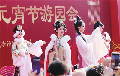 记者看到,今年的“李沧之春”元宵节游园会,在传统民俗风格基础上创意增加国风元素,融合传统与时尚之美,精心策划了上元节礼仪表演、汉服走秀、婚服走秀、国风双人舞、国风巡游等上元节传统文化表演,同时还设置了投壶体验、蹴鞠体验、耍龙灯体验、游园会打卡、飞花令通关、寻找汉婚CP、猜灯谜、同袍征集等游园项目体验活动。
