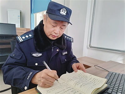 1月18日,腊月廿七,记者在中韩派出所见到了55岁的片警刘化升。虽然双鬓略有斑白,但是刘化升的腰板挺直、目光坚毅,举手投足间散发着退役军人的特有气质,还有人民警察的沉稳、干练和热情,让人印象深刻。