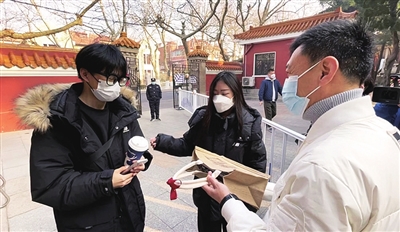 当天正值元宵佳节,青岛市美术馆馆长迟涛向通过大学路7号门到访的第一组家庭送上了精心准备的美术馆文创大礼包。里面有美术馆自制的日历、T恤等商品,这些商品均为青岛市美术馆自主研发,提取美术馆的时令、建筑和馆藏作品的艺术元素,自春节在罗马展厅一楼开始销售以来,受到大家的普遍关注和欢迎。美术馆的工作人员还向前20位游客派送了元宵文创福袋,每个福袋中除了美术馆的文创礼品外,还有美术馆老师们精心书写的元宵灯谜。猜灯谜,闹元宵,惊喜不断,让元宵节到馆的观众多了一份节日的欢笑。市民臧女士在接受记者采访时表示,自己刚刚从外地旅游回来,赶在孩子开学前再来家门口的美术馆感受艺术氛围,没料想收获了这一份不期而遇的惊喜,“讨个好彩头,十分开心。”