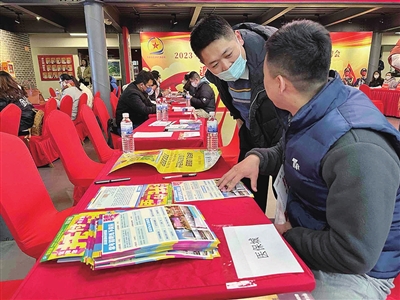 退役军人在招聘会现场咨询。