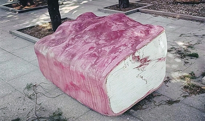 ▶雕塑作品《被水浸泡的小学生字典》。