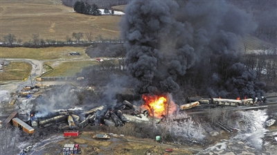 一列运载有毒化学品的列车本月初在美国俄亥俄州东部脱轨,当地应急部门先前声称对车载有毒气体氯乙烯进行了“受控释放”。然而,美国媒体13日报道,脱轨所涉车厢运载的有毒化学品不止氯乙烯,还包括乙二醇丁醚、丙烯酸异辛酯和异丁烯。美国交通部长皮特·布蒂吉格当天出席活动时,闭口不谈列车脱轨事件。