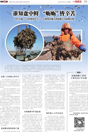 在过去的10多年里,对于一直在海上养殖海蛎子的青岛市即墨区鳌山卫街道神汤沟村渔民冯炳雪来说,平淡的日子里发生着不小的变化:小小的海蛎子,从开始的每斤几毛钱卖到了现在的2元钱,从原来的“本地销”变成为南方“鲜霸”。市场需求大了,养殖产量和收入也跟着增长,老冯感觉十分知足,每年靠着蛎子收入15万元左右,一家人住在小渔村“海景房”里,过着平淡幸福的日子。昨天,已经连续跟踪采访冯炳雪10年的早报记者再次登上养殖小渔船,和60岁的老冯一起,冒着-8℃的气温出海捕捞海蛎子。