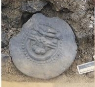 ◀内蒙古巴林左旗辽上京皇城遗址南部一号建筑基址出土的瓦当。