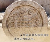 ▲甘肃礼县四角坪遗址出土的云纹瓦当。