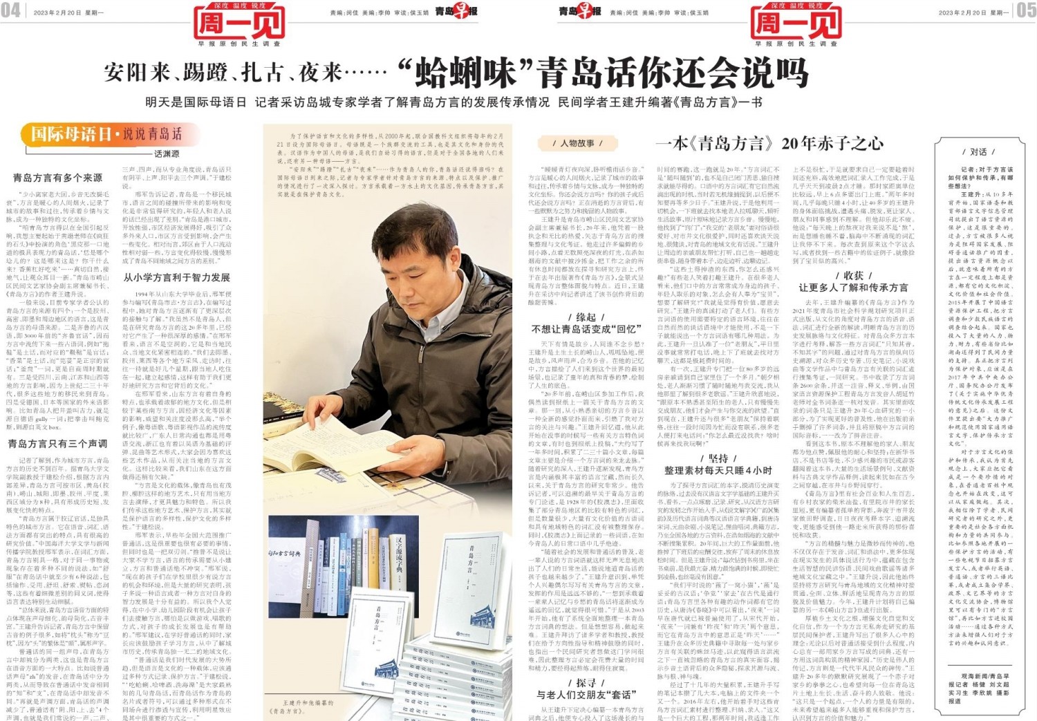 “方言的精髓与魅力是微妙而传神的,绝不仅仅存在于发音、词汇和语法中,更多体现在现实发生的具体说话行为中,蕴藏在包含生活智慧的民谚俗语、民间戏曲歌谣等诸多地域文化宝藏之中。”王建升说,因此他始终坚持将方言研究与青岛地域的文化精神对接贯通,全面、立体、鲜活地呈现青岛方言的原貌及价值魅力。今年,王建升计划将自己编纂的另一本《崂山方言》也进行出版。