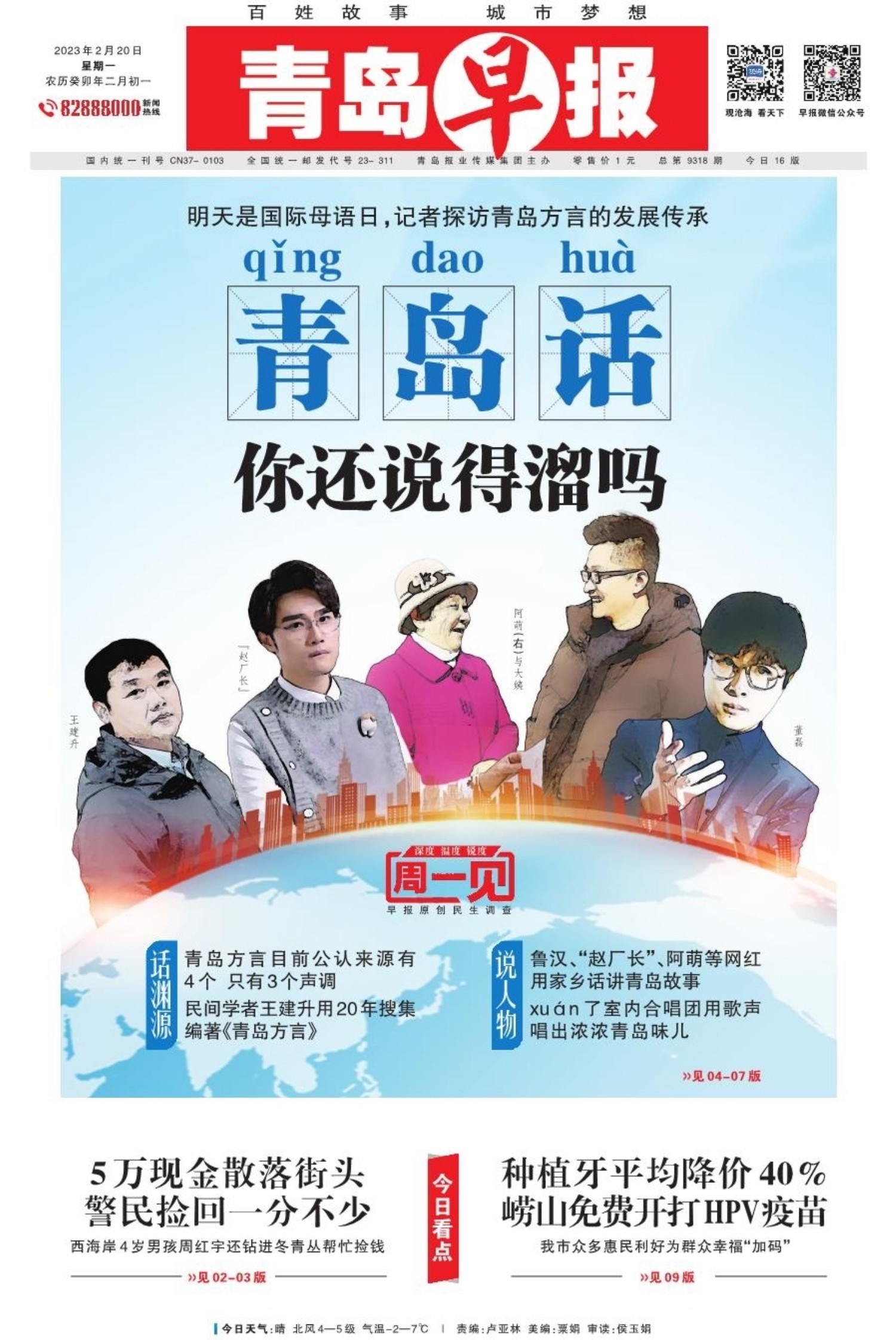 A01 头版 A02 创建全国文明典范城市 A04 周一见 A06 周一见 A08 慈善 A09 发布 A10 城市更新建设,让生活更美好 A11 一线探访 A12 都市圈 A13 瞰青岛 A14 新气象 A15 乐游 A16 观天下