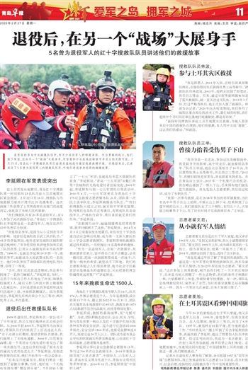 “我们搜救队共有20多名退役军人,有5人参加了此次救援行动。”青岛红十字搜救队队长李延照也是一名退役军人,他在这次行动中负责后方协调。
