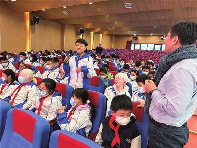 “天不生仲尼,万古如长夜。”欲谈《论语》,要先从孔子的地位说起。刘耀辉以设问的方式做了开场白:“一个‘论’字,仅仅在《论语》这一专属名称中念二声,在其他的词组,如讨论、论据、论点等,全都是四声。原因何在呢?”看似平常的一个问题,却巧妙地激发起孩子们的好奇心。随后,刘耀辉又旁征博引,用陈寅恪的“恪”字读音用以佐证,“我们都知道‘恪’字的读音是‘kè’,但唯独在他的姓名中读作‘què’,这并非误读,而是遵循客家方言的发音,以示尊重。这同样也向我们说明了一个道理,当一个字不是常规读音的时候,一定是有其特别的意义。”