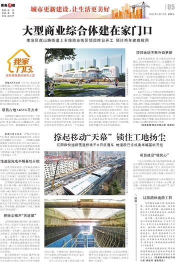 施工期间难免产生扬尘、噪声等,影响周边居民生活与商户营业。施工人员首次在青岛市基坑工程中应用多功能移动式天幕。天幕展开时,能够将基坑上方严实遮挡,把传统露天作业变为“室内作业”,有效降低扬尘污染。