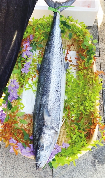 聊起“鲅鱼王”,这也是很多船老大、鱼贩子们都喜欢谈及的话题,“鲅鱼王”的大小总能引起很多人的共鸣。2011年,在崂山非遗节的祭海仪式上,主办方曾经展示出了一条300斤重的“鲅鱼王”,次年主办方又展示了一条“鲅鱼王”,只不过鲅鱼被刷上了银粉。其实那是同一条大鲅鱼,从冷库里拿出来的。2011年展示的“鲅鱼王”是荣成渔民打捞上来的,2012年以后的沙子口鲅鱼节上,就再也见不到百斤以上的大鲅鱼了。