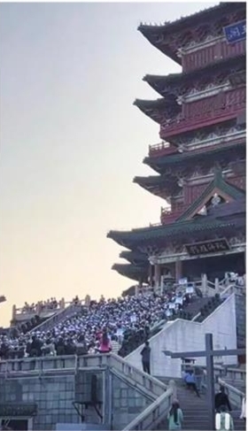 游客拍摄的9中学子集体诵读《滕王阁序》视频截图。