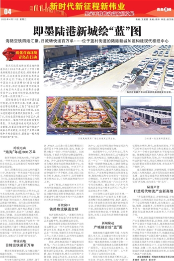 国际陆港位于青岛市即墨区蓝村街道,这里拥有公路、铁路、海港、临空等交通要素,汇集了“海陆空铁”物流现代枢纽的即墨国际陆港,正在加速构建和完善现代枢纽体系。4月7日,行走在国际陆港各个园区内,眼前呈现出一幅现代物流枢纽的繁忙景象。作为极富特色的现代物流产业重镇,即墨国际陆港和蓝村街道产城融合双向赋能,以特色产业带动城镇和乡村全面振兴,描述出一幅美好和谐的新“蓝”图。